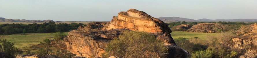 Um halb fünf gehts los. Die Felsformation Ubirr ist die zweite "Plicht" in Kakadu. Neben den auch hier bekannten Felszeichnungen hat man einen grandiosen Blick über die Nadab Foodplain. Die etwa 40 Kilometer lange Fahrt läuft problemlos. Wie schon am Morgen treffen wir kaum Autos. Das Fahren ist wirklich angenehm. Auf dem Parkplatz ist es dann schon etwas voller. Aber auf dem Rundweg und vor den Felszeichnungen ist es angenehm leer. Wir besteigen einen Felsen, um von oben den tollen Sonnenuntergang zu verfolgen. Ich war vor neun Jahren schon einmal da und war begeistert. Der Blick, die Sonne, toll. Die gleiche Idee hatten allerdings noch mehr Leute. Und es werden immer mehr. Mehrere Schulklassen leisten uns Gesellschaft und auf dem Felsen geht es zu wie auf dem Weihnachtsmarkt. Ok, es wird nicht gedrängelt und Alkohol gibt es auch keinen (ist im gesamten Nationalpark an öffentlichen Orten verboten), aber von der Menschenmasse kommt der Vergleich hin. Und dann: Supergau. Nachdem den ganzen Tag schon Wolken durchgezogen sind, wir schon Angst hatten, dass da mit dem Sonnenuntergang nicht funktioniert, es dann aber doch zum Abend wieder besser würde, verschwindet die Sonne tatsächlich kurz vorm Horizont in einem Wolkenschleier. Das wars dann. Das ganze Schauspiel nur halb so schön. Das letzte Sahnehäubchen fehlte. Schade! Der Himmel, und dadurch auch die Felsen, färben sich nicht in ein schönes, warmes Rot. Es ist eher alles grau. Und so schnell der Menschenauflauf gekommen ist, zieht die Karawane wieder ab. Die Sonne ist weg und die Menschenmassen sind es auch gleich. Wir machen uns auf den Rückweg. Die Fahrt läuft auch im Dunkeln problemlos und Tiere laufen uns zum Glück auch nichts vors Auto. Allerdings färbt sich der Himmel um Jaribu langsam rot. Je dichter wir kommen, desto deutlicher wird, dass es brennt. Ein Buschbrand, den wir schon in den letzten Tage in der Nähe der Stadt gesehen haben, scheint größer zu werden, den inzwischen sieht man nicht nur Rauch sondern auch richtige Flammen. Aber die Leute gehen damit sehr entspannt um. In der Stadt und im Hotel scheint sich dafür niemand zu interessieren. Buschbrände stehen auf der Tagesordnung, sie sind sogar erforderlich und erwünscht. Einige Bäume können sich nur vermehren, wenn sie von unten Hitze bekommen, nur dann platzen die Früchte und die Samen werden verteilt. Verrücktes Australien.